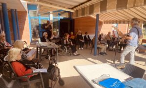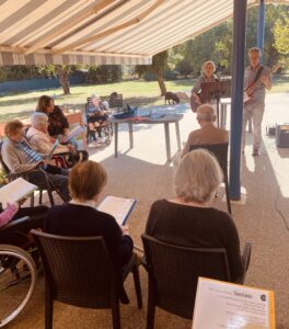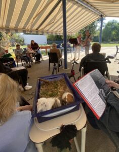 Nous avons donc eu le plaisir de déjeuner avec d’autres résidents et de partager un moment de chanson en compagnie de nos moutons et de nos cochons d’inde.